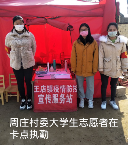 吴倩,家住驻马店泌阳县王店镇周庄委,疫情发生后,得知村委要设置疫情防疫卡点,她和小伙伴毫不犹豫的找到书记表达愿意做志愿者的决心,虽然不能像医护人员那样奋斗在前线,但愿尽绵薄之力,提醒村民增强自觉意识,做好防护,不给国家添乱。多次申请后,最终成为一名光荣的青年抗疫志愿者。