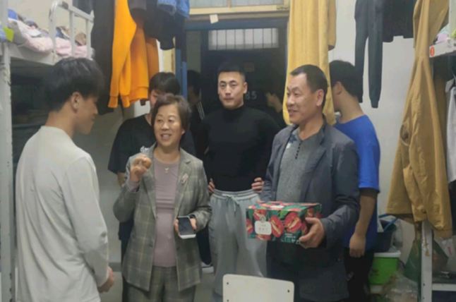 2022年10月31日晚,谈球吧体育官网入口副校长李秀萍、谈球吧体育官网入口党总支书记陈鹏在工作之余了解到今天是我院一名学生的生日,因此特意去学生宿舍为我院远离家乡的学生送去生日祝福,让学生感到家的温暖。