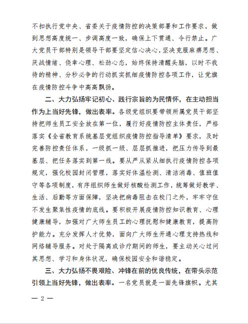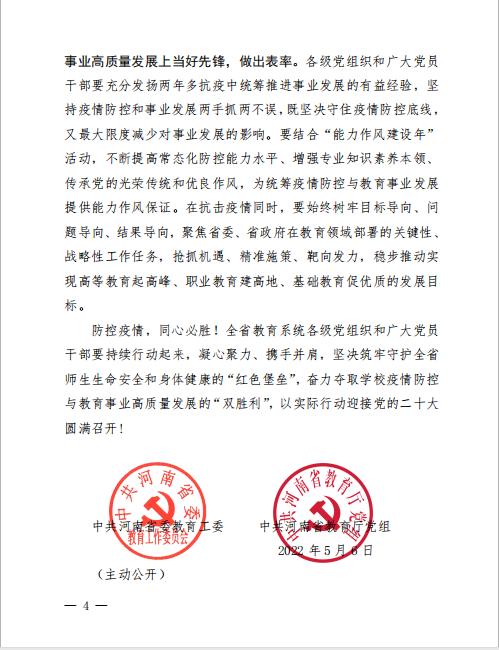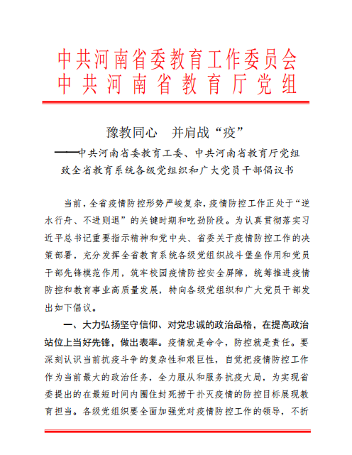 豫教同心 并肩战“疫”——中共河南省委教育工委、中共河南省教育厅党组致全省教育系统各级党组织和广大党员干部倡议书