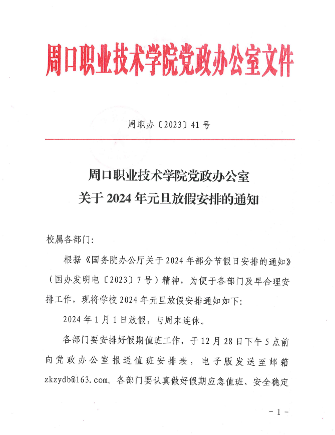 谈球吧体育官网入口党政办公室关于2024年元旦放假安排的通知