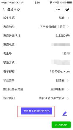 完善个人信息以及签约企业信息,点击生成下载就业协议书。