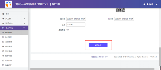 对于通过“线上签约”完成签约的学生,可登录学生端PC后台完成解约操作,其他解约均在线下进行。