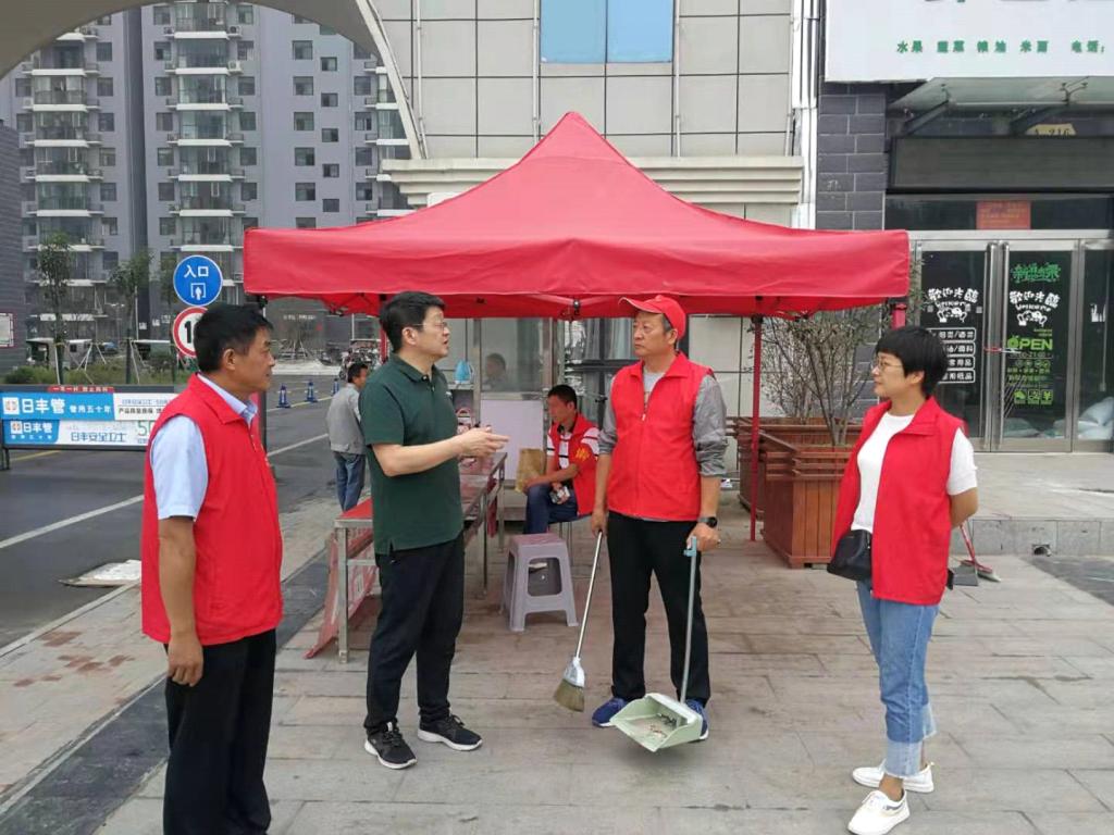 志愿者们按时到达许寨社区,许校长早早来到社区安排部署工作,两部门在社区门前设立了值班岗和卫生流动巡查小组、学校大门口设立了卫生监督岗、并在开元路和五一路路口设立了交通疏导执勤岗。志愿者们各司其职,在许寨社区周边打扫卫生,规范摆放共享单车,引导商户规范停放交通工具,清扫垃圾死角,清理社区内建筑垃圾,铲除小广告,向周边商户宣传创建卫生城市的精神、普及创卫工作要求和卫生常识。