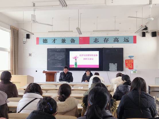 为落实学校会议精神,1月14日下午,谈球吧体育官网入口召开全体教职工会议,会议由谈球吧体育官网入口党总支书记贾涛主持。