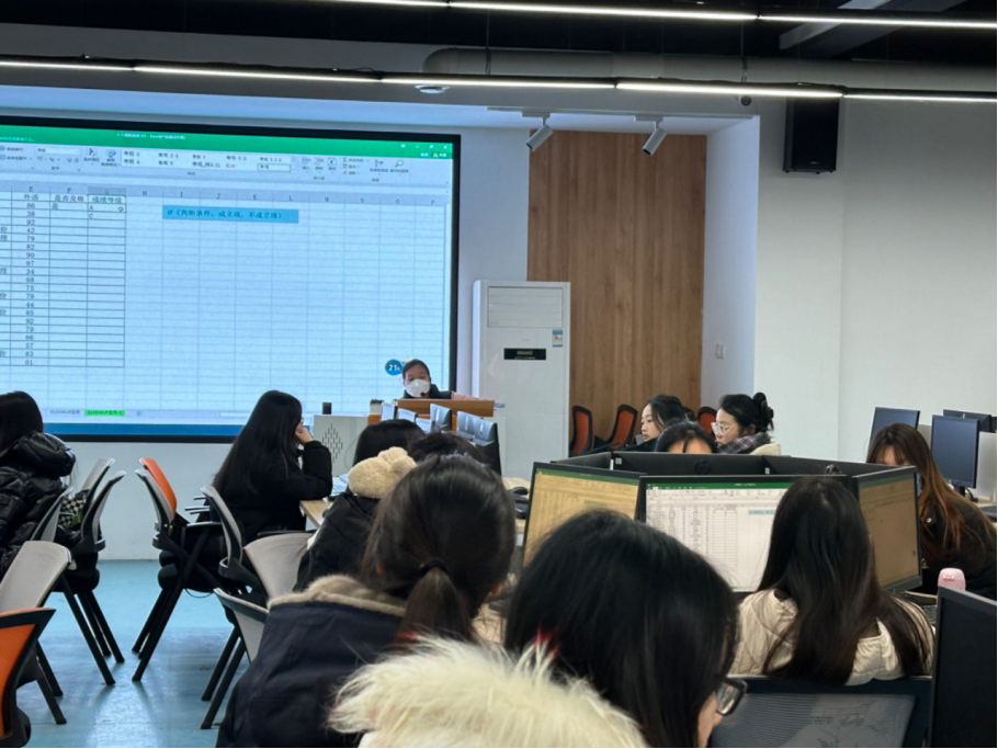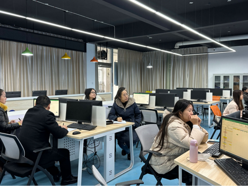 为提升教学技能,提高教学质量,强化学习共同体,谈球吧体育官网入口于12月12日上午开展集体听课活动。谈球吧体育官网入口书陈鹏、院长袁向华带领四位教研室主任和多名骨干教师到图书馆三楼智能财税实训室听取郭淑君老师《成本会计》课程。