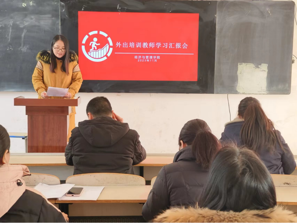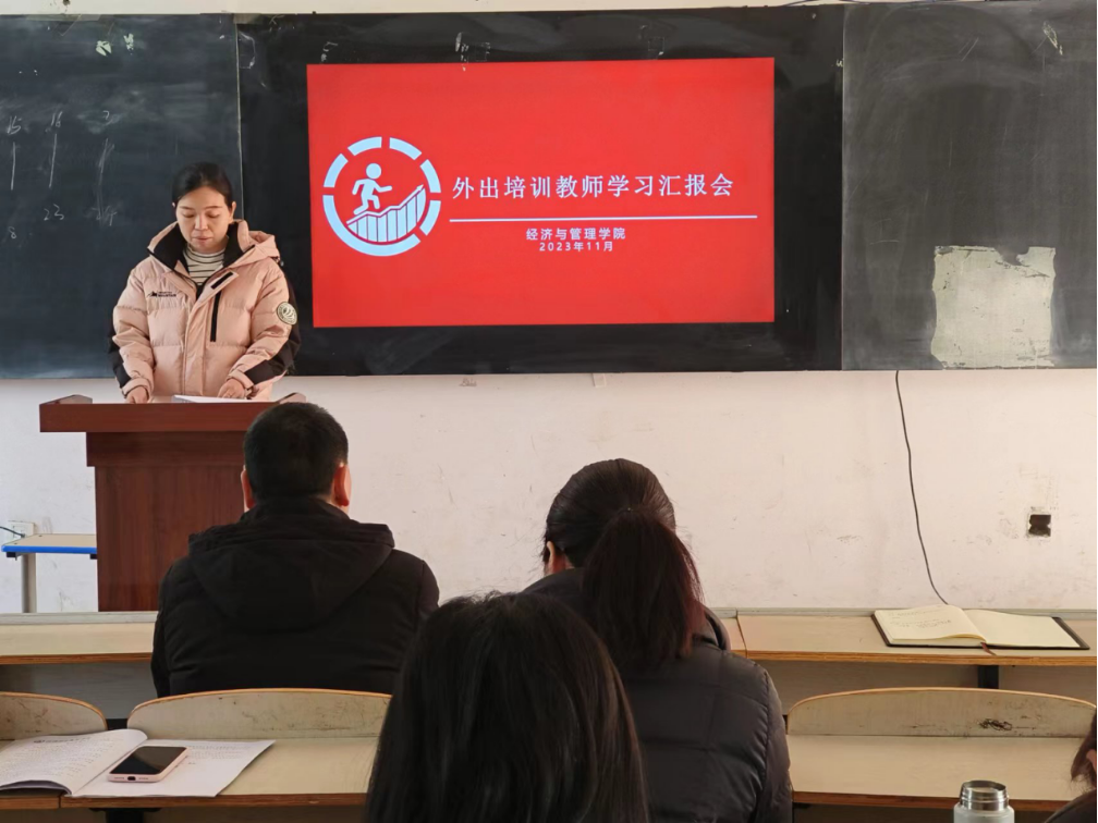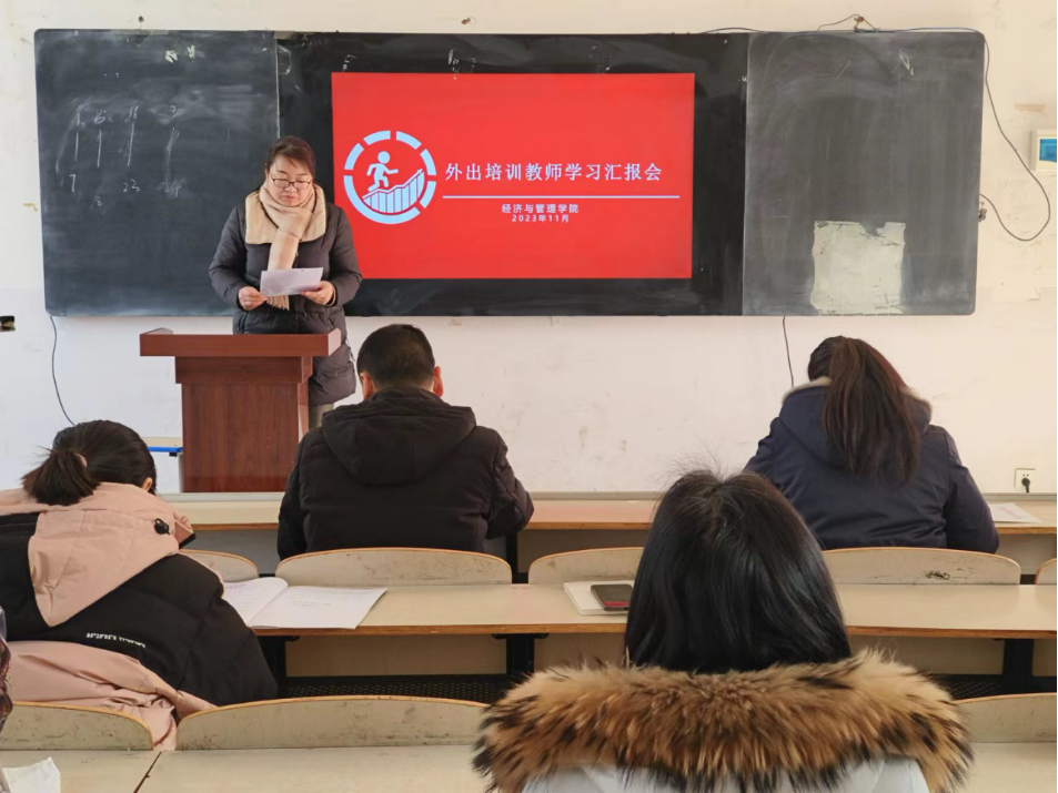 在汇报会上,王梦霞老师首先汇报了自己的学习内容,主要有基于三合理念,深化三教改革,加速职教发展,EXCEL工具技巧高级应用,新时代会计教师的战略准备,以及数智化转型及数智企业经营沙盘体验,国家在线精品课程建设策略与实践等内容,通过学习,王梦霞老师切实感受到了自身能力的提高,更好的完善了自身的知识体系,用实践去深化巩固理论成果的重要性。