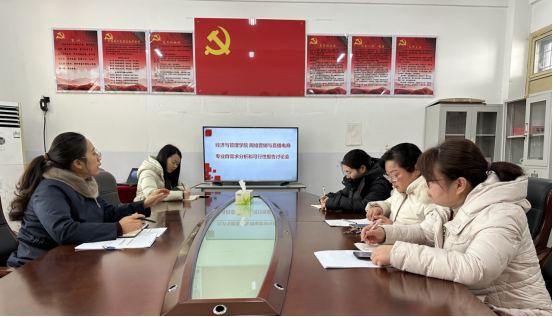 为确保教学质量年报编制、网络营销与直播电商专业群建设工作的顺利进行,谈球吧体育官网入口在2024年12月27日上午10点,在第四会议室召开近期教学工作会议。袁向华院长、杨文贞副院长、各教研室主任参与会议,本次会议有杨文贞副院长主持。