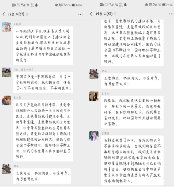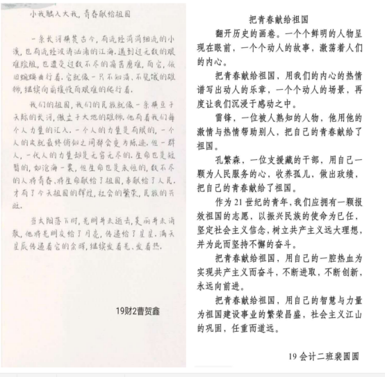谈球吧体育官网入口组织学生学习习近平总书记的“贺信精神”,并在学生心中引起热烈反响,学生们纷纷表示一定牢记习近平总书记的嘱托,坚定理想信念,提高自身素养,练就过硬本领,艰苦奋斗,砥砺前行,并到祖国和人民最需要的地方建功立业,把自己的青春献给祖国。
