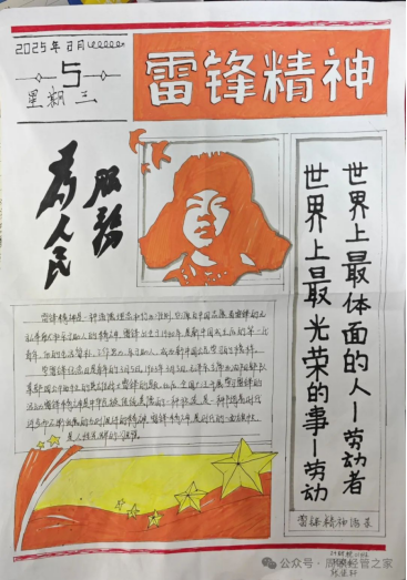 活动过程中,同学们全心投入,精心设计手抄报版面,绘制精美插图,摘抄雷锋事迹和名言。有的用鲜艳的色彩展现雷锋做好事的场景,有的用绚丽的色彩和生动的文字表达了对雷锋精神的独特理解。从版面设计到内容选取,从色彩搭配到绘画技巧,每一幅手抄报都凝聚了同学们的心血。